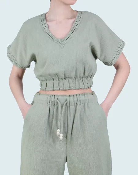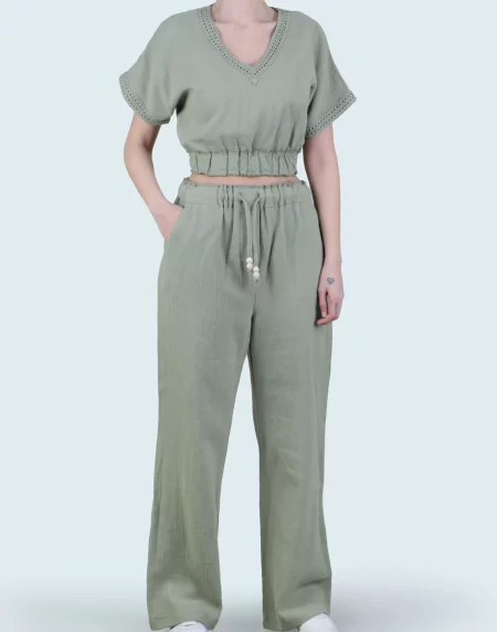 این ست رو میتونی با یه کیف دوشی جمعوجور، کتونی سفید یا صندل راحت، و عینک آفتابی سبک تابستونی ست کنی. ترکیبی بینقص برای روزهایی که هم دنبال راحتی هستی، هم دنبال جذابیت بیشتر.